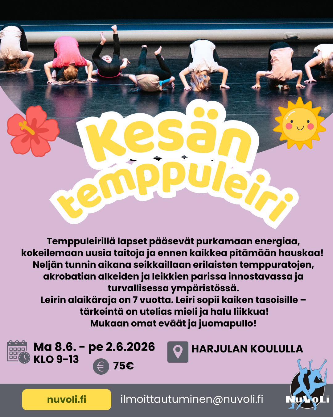 Tervetuloa mukaan NuVoLin kevätkaudelle! Voit tulla mukaan kesken kauden. Lasku muokataan jäljellä olevien kertojen mukaan ja sen lisäksi tulee 30€ jäsenmaksu.